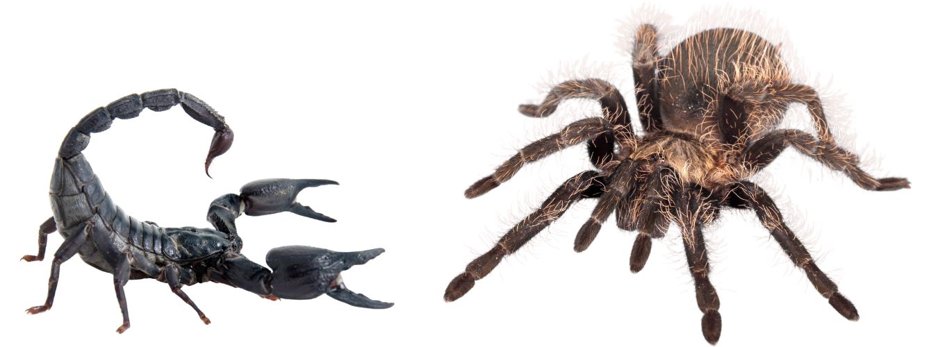 - spinnen en schorpioenen (zoals vogelspinnen of Aziatische schorpioenen)